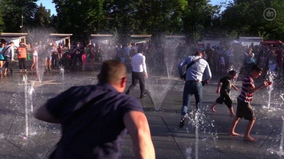 Примеру Зеленского последовали некоторые из горожан и тоже оказались под струями воды.